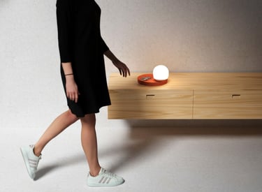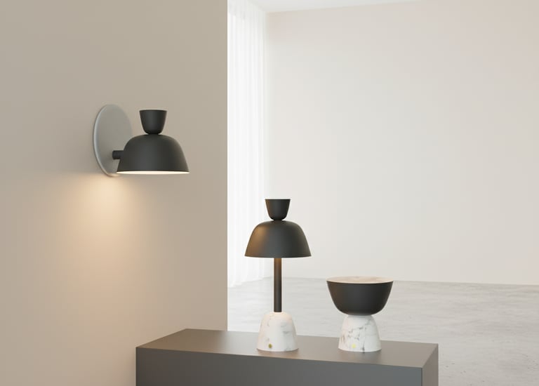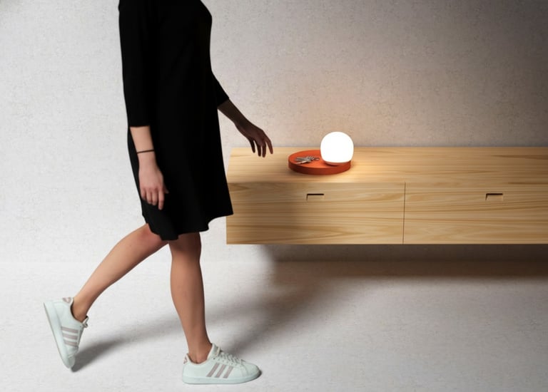 Ongi Etorri welcomes you. A lamp with a base designed to hold small items when you arrive home. Collaboration with Bambú Studio.