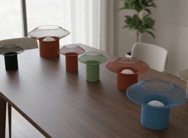 Ioritz is a lighting family made from recycled plastic rope and metal. Its cheerful, appealing forms create a focal point whether the light is on or off.