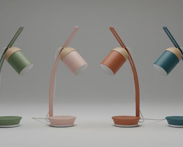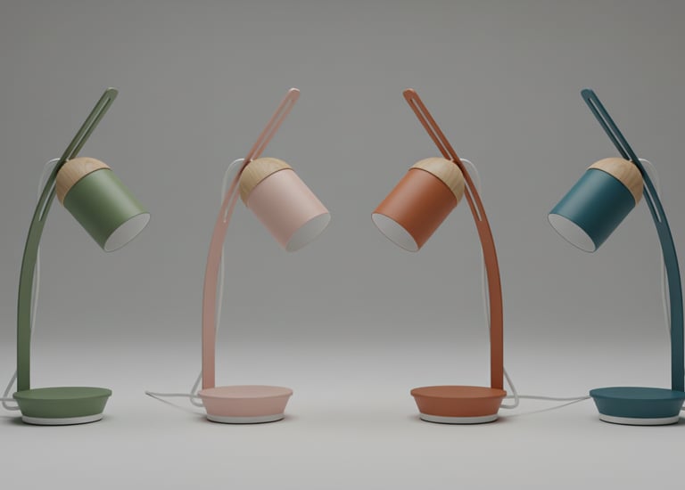 Flexo is an adjustable lamp combining metal and wood, featuring dimmable LED lighting. Collab David Ulibarri & Bambú Studio.