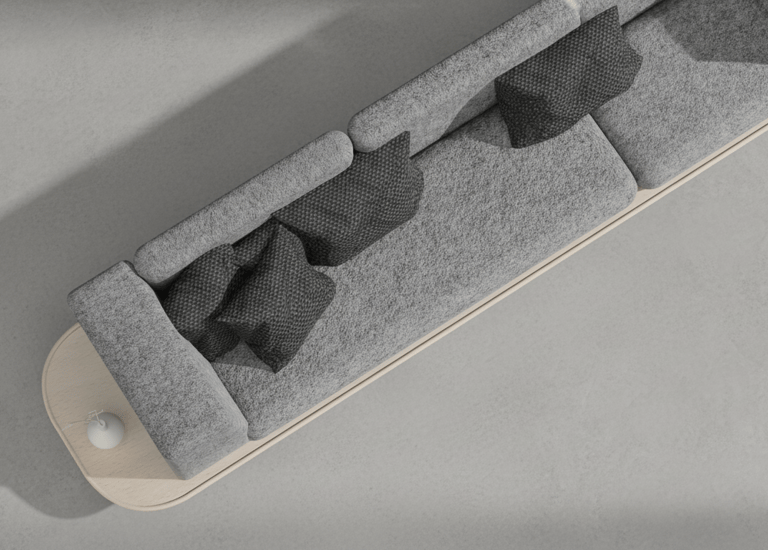 Minimalist benches inspired by the simple structure of the Txalaparta, configurable with three interchangeable modules that serve as seats or side tables.