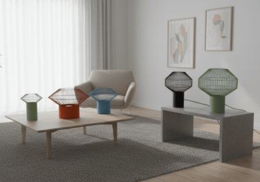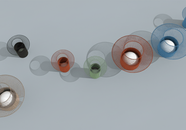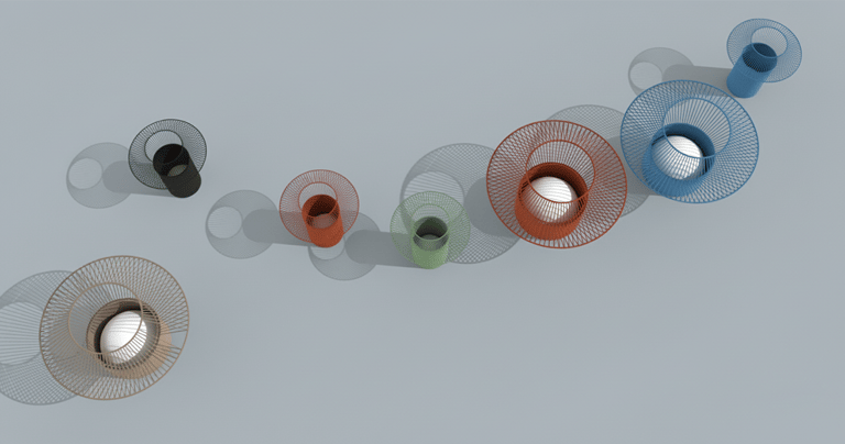 Ioritz is a lighting family made from recycled plastic rope and metal. Its cheerful, appealing forms create a focal point whether the light is on or off.