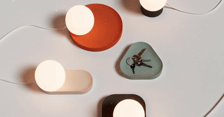 Ongi Etorri welcomes you. A lamp with a base designed to hold small items when you arrive home. Collaboration with Bambú Studio..